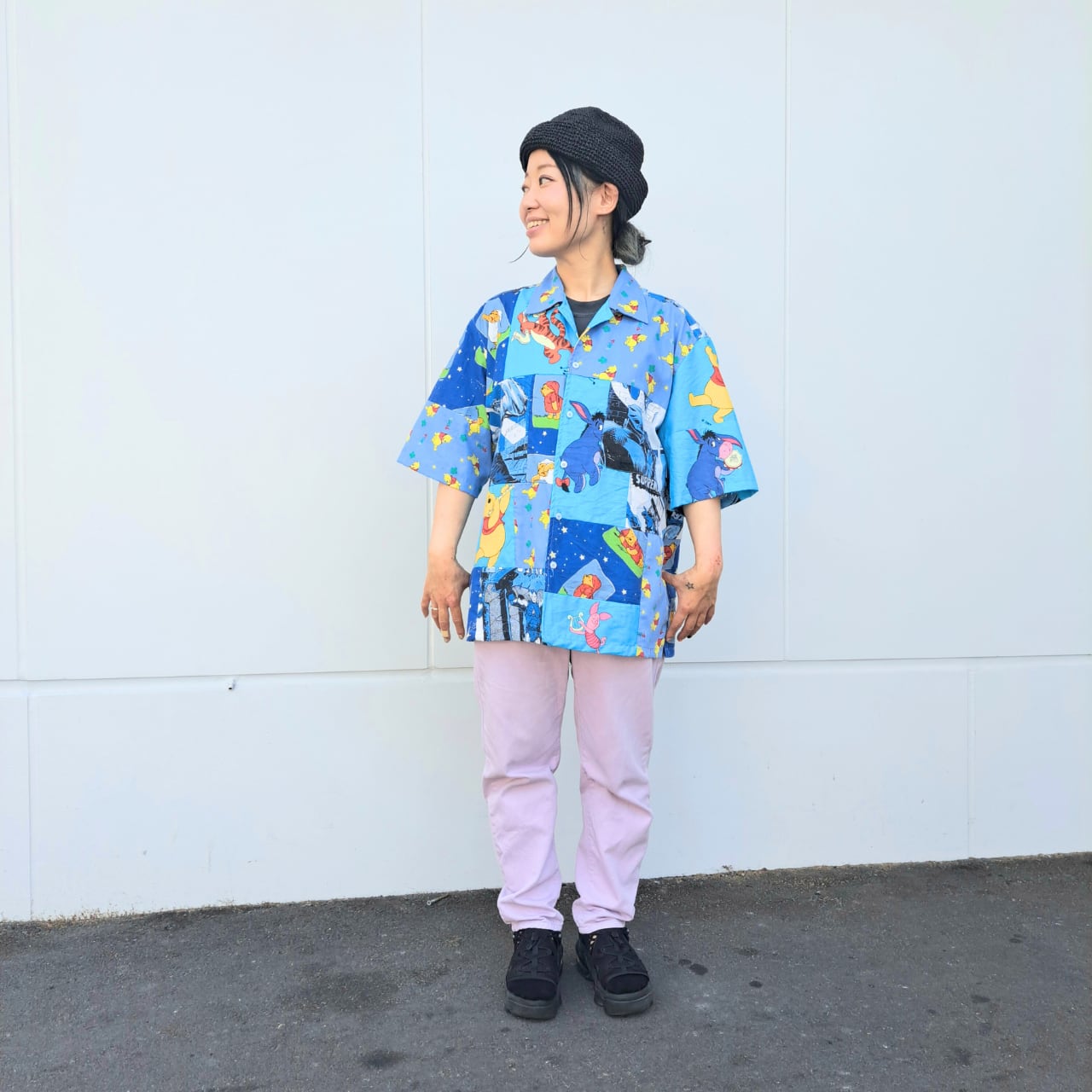 USEDのキャラクター古着を解体後、一枚のシャツとしてリメイク。
