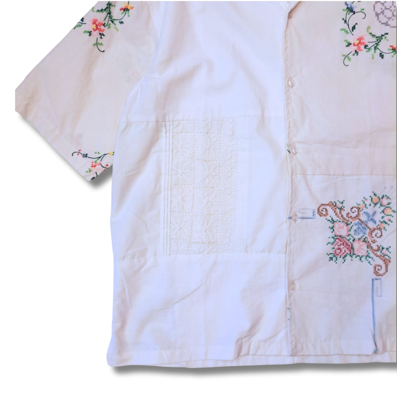 USEDの刺繍シャツを解体後、一枚のシャツとしてリメイク。