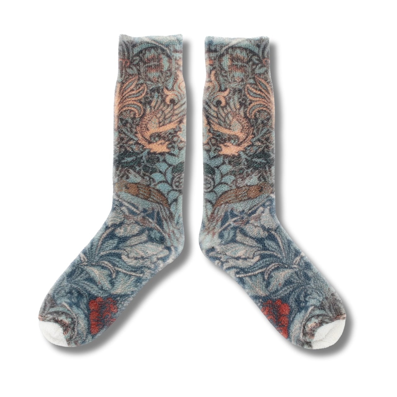 イギリスのテムズ川支流の名前をつけた「川」シリーズの作品をはじめ、ウィリアム・モリスの描く自然の代表作にHOiSUMらしいアレンジを加えた靴下が完成しました。