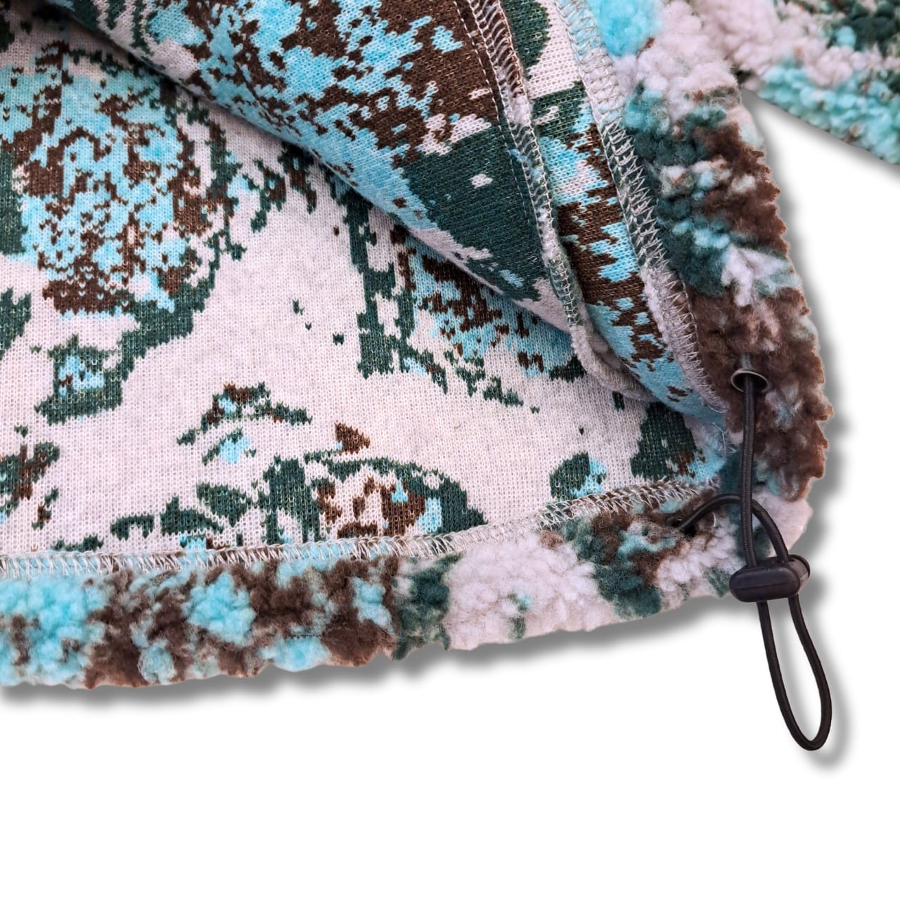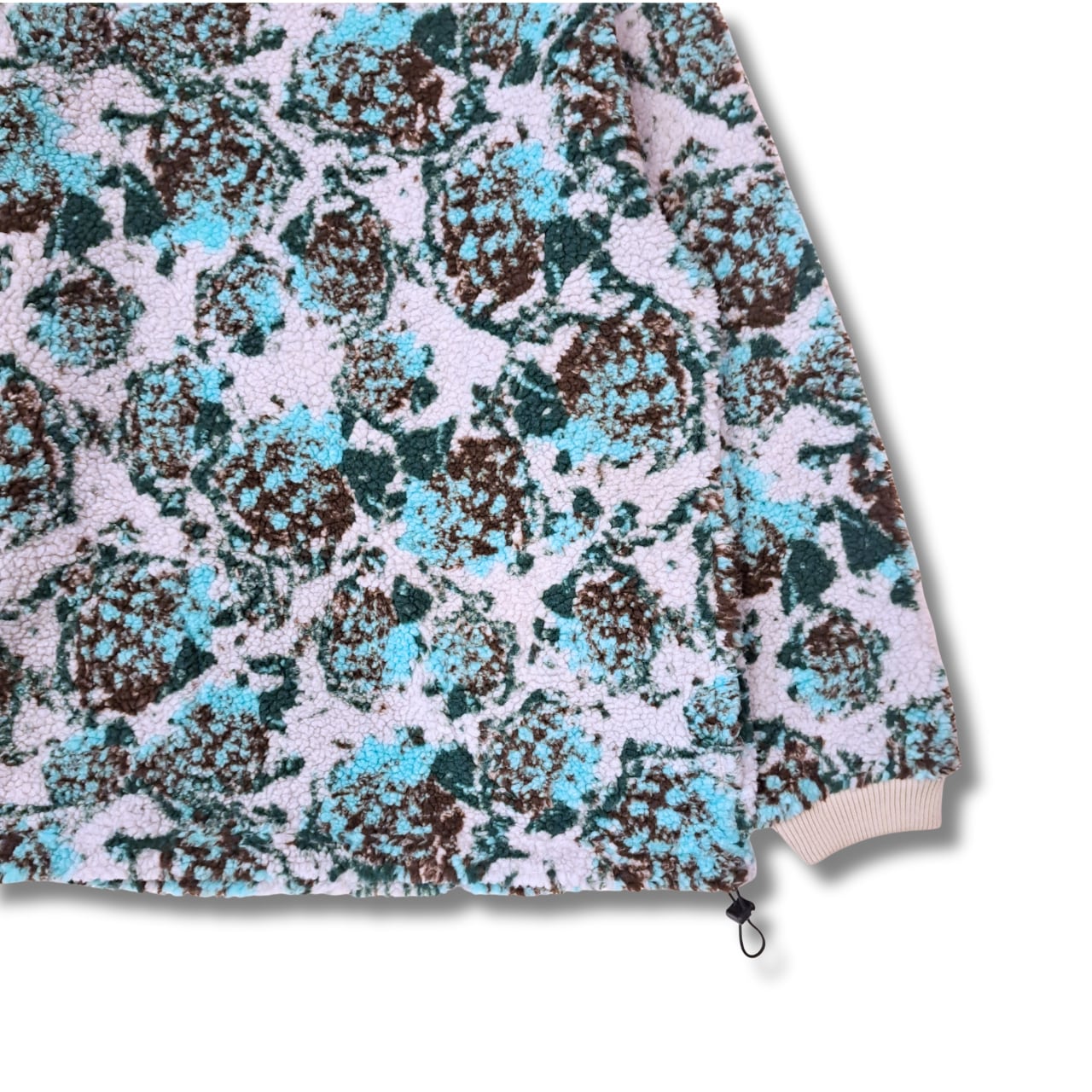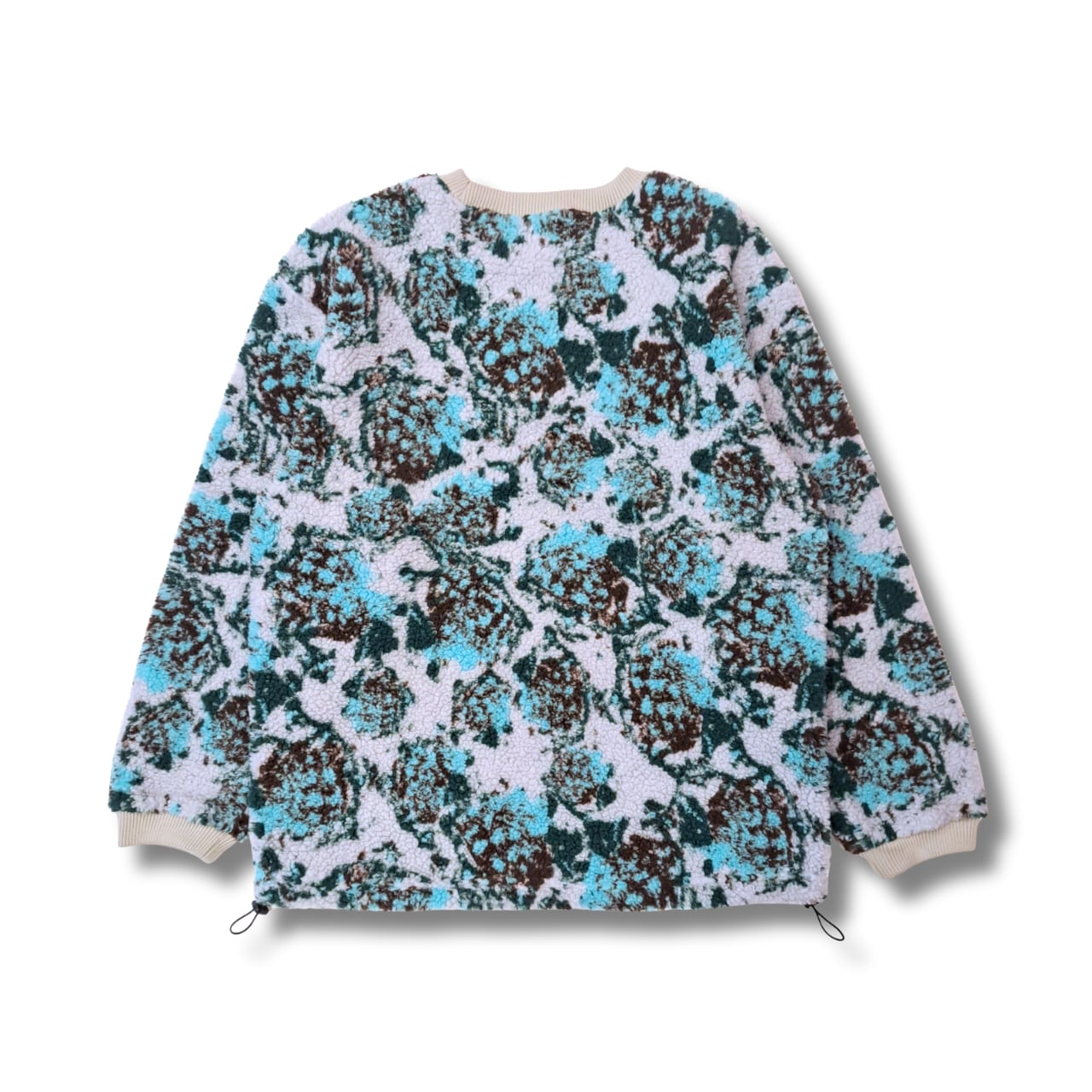モデムデザインらしいフラワー柄が個性的なボアプルオーバー。