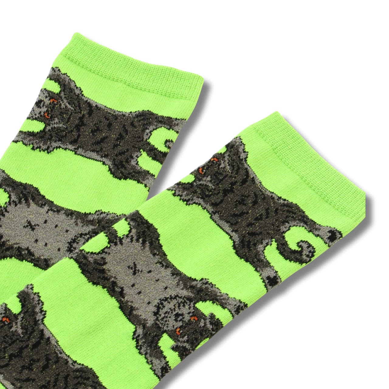 そんなコロナ君の表情を、鮮やかなグリーンとブルーで表現。足元から元気をもらえる、ポップなデザインです。