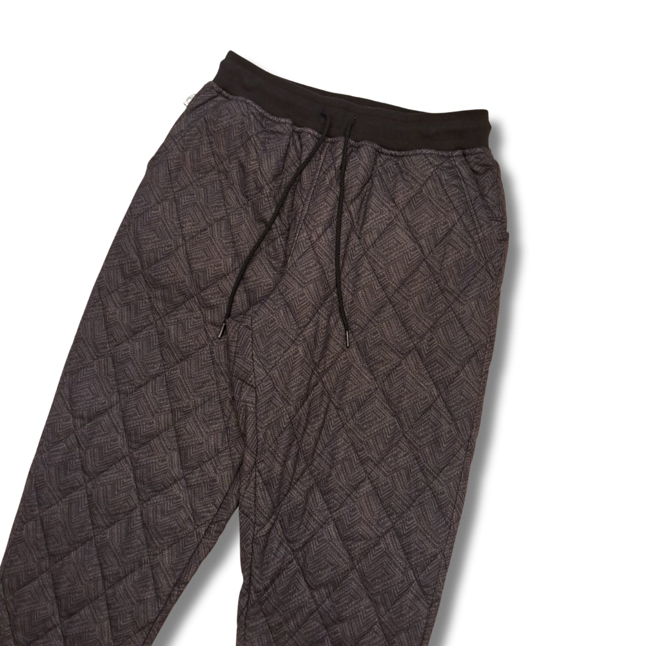 幾何学のジャガードがプリントされたキルティングパンツ。