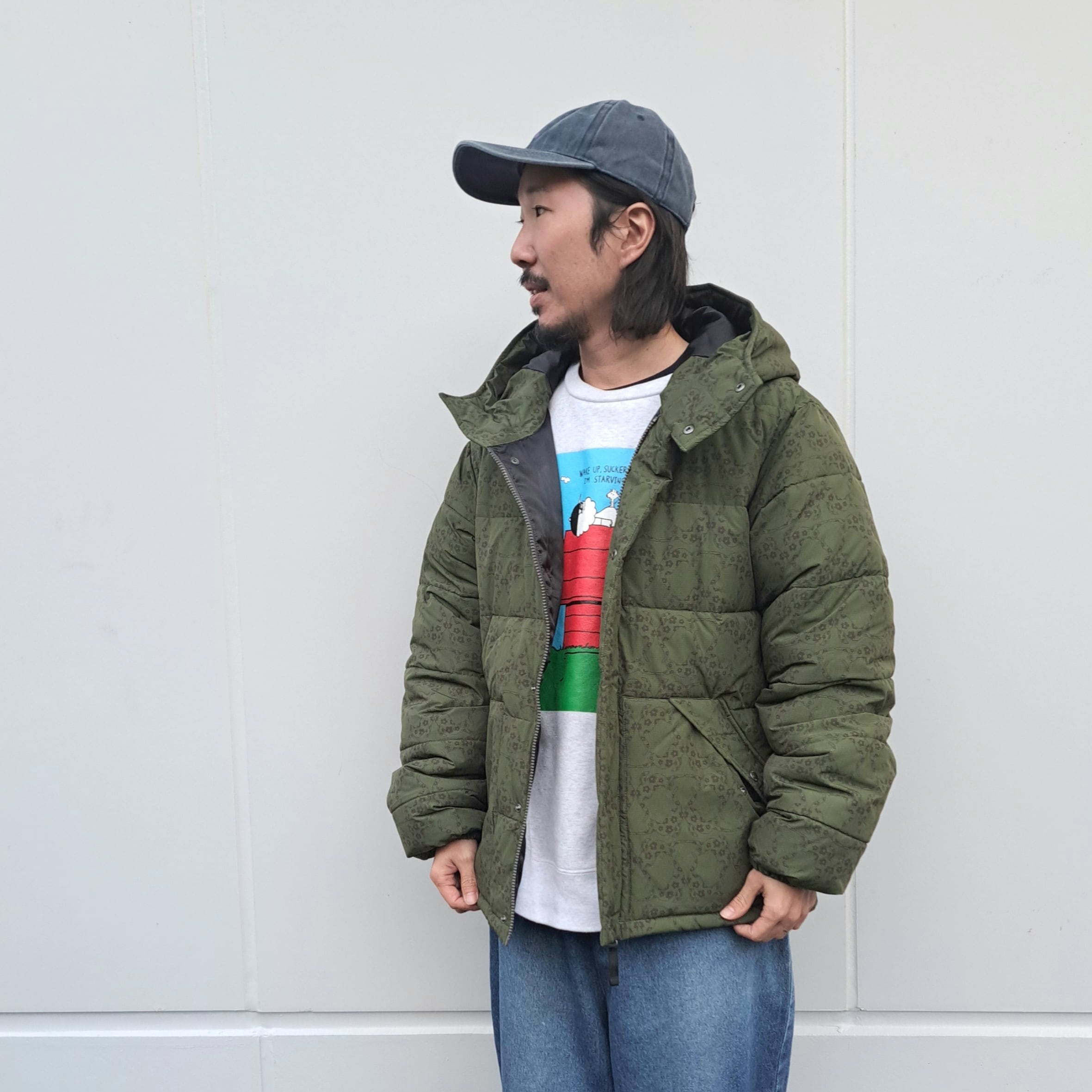 リップ地にネコの総柄プリントをした触り心地の良い中ワタマウンテンパーカー。