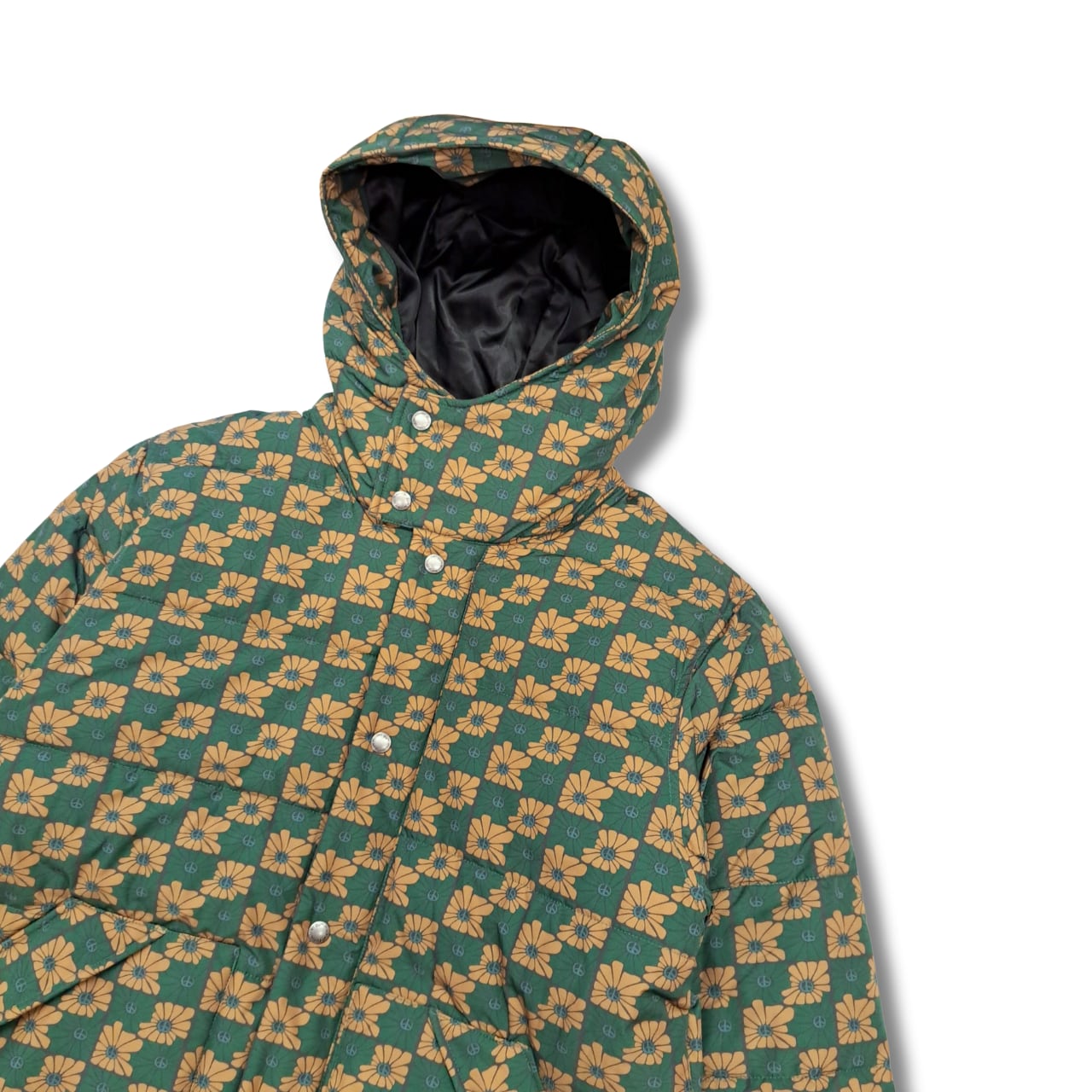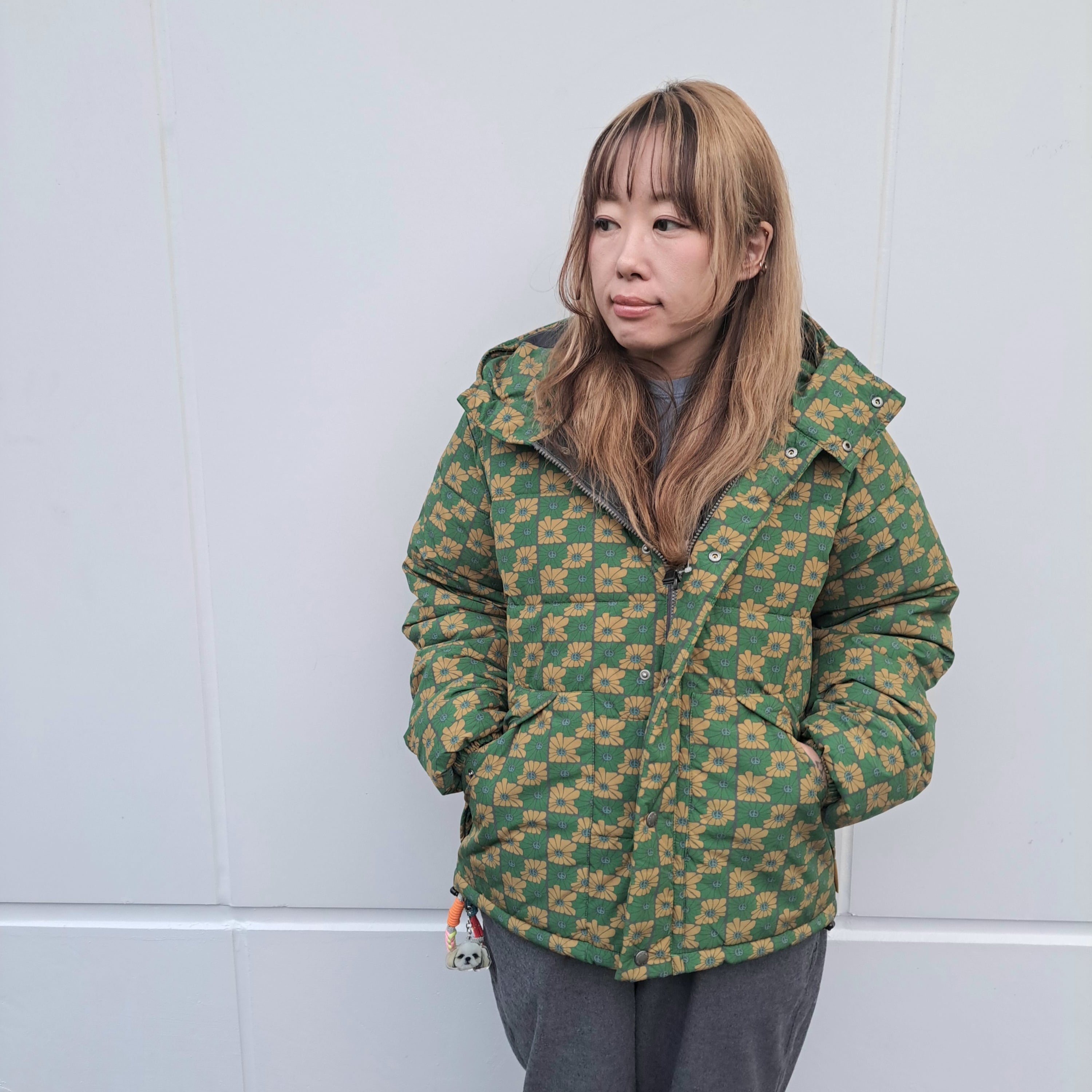 リップ地にフラワーの総柄プリントをした触り心地の良い中ワタマウンテンパーカー。