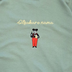 筆記体でフロントには「おつかれ生」、バックには「とりあえずビール」刺繍。