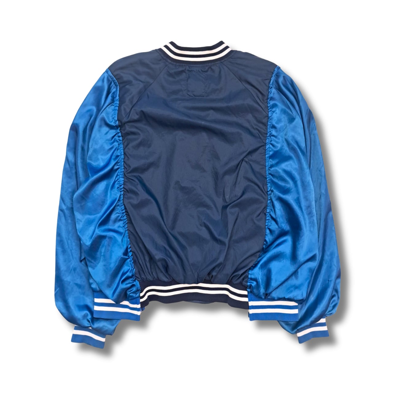 2枚のUSEDのナイロンスタジアムジャケットを解体後、1枚に再構築。