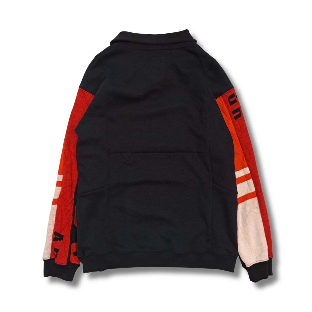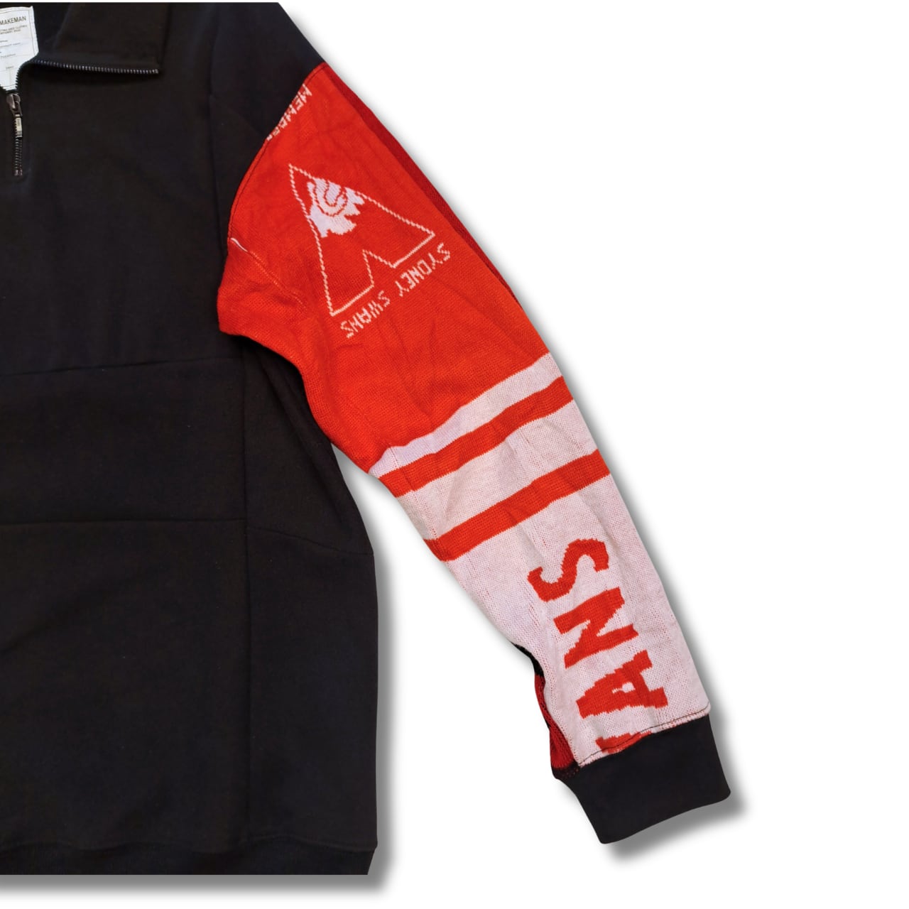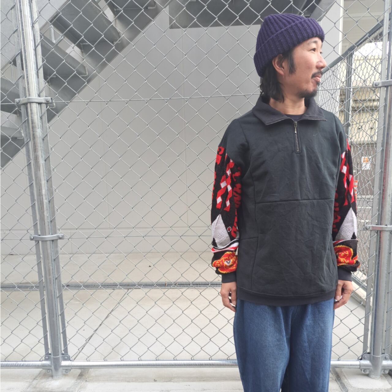 USEDのハーフジップスウェットに海外のフーリガンマフラーを袖としてドッキング。