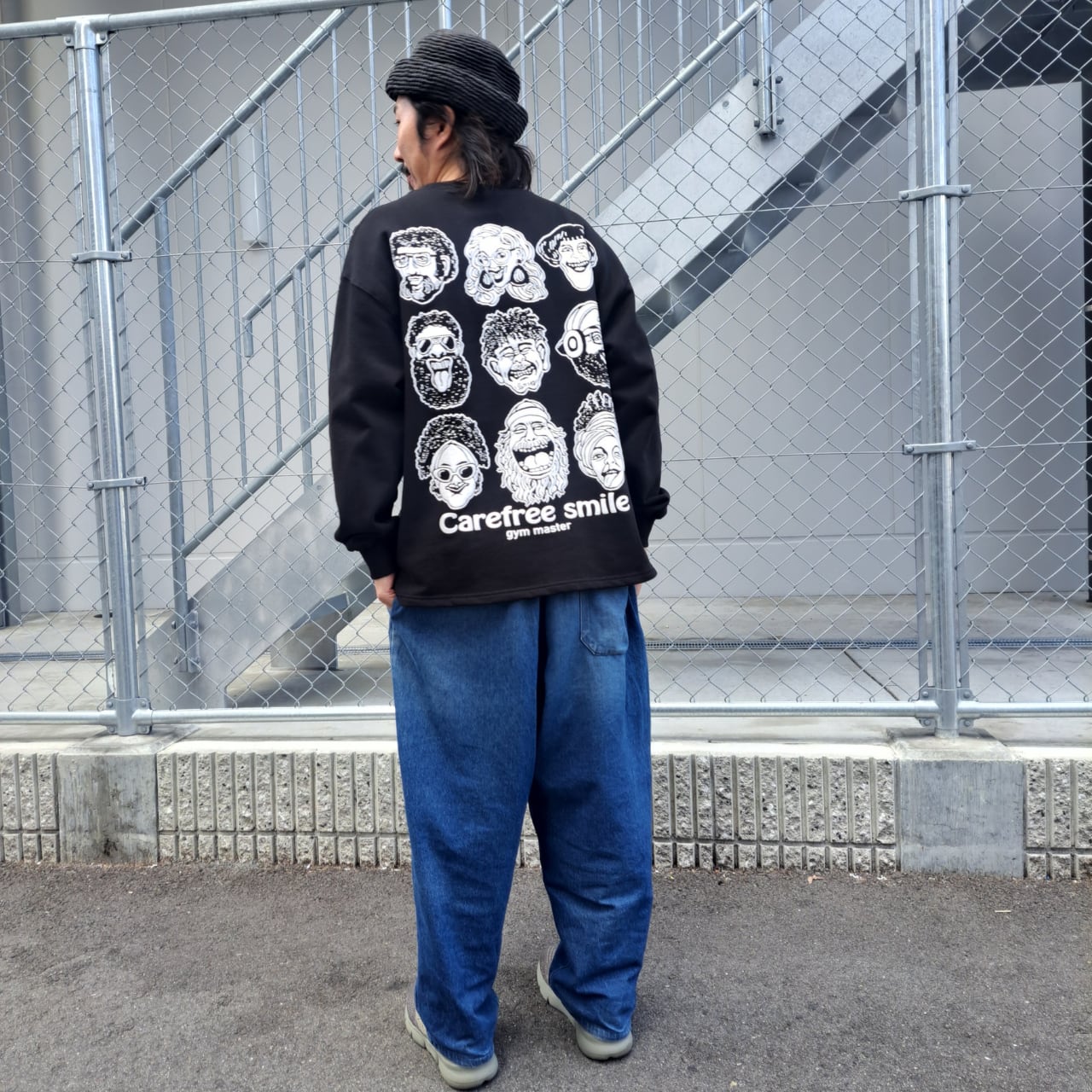 ゆったり身幅のあるワイドシルエットに加え、裾のサイドにスリットが入っているのでストレスフリーな動きやすい型になっております。