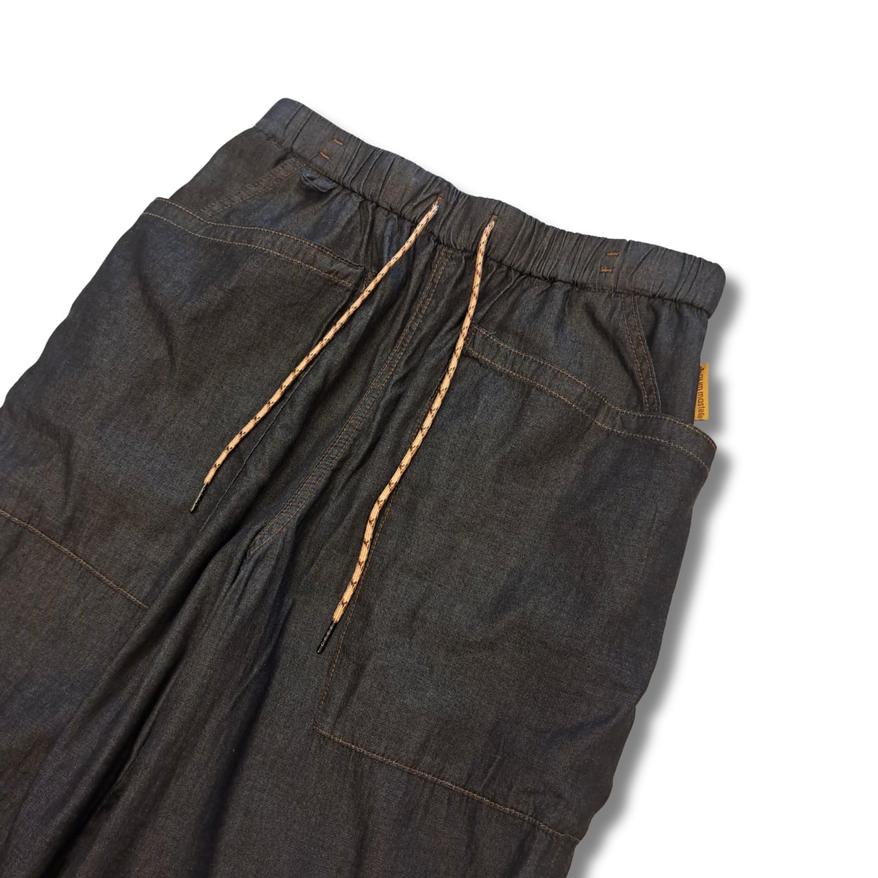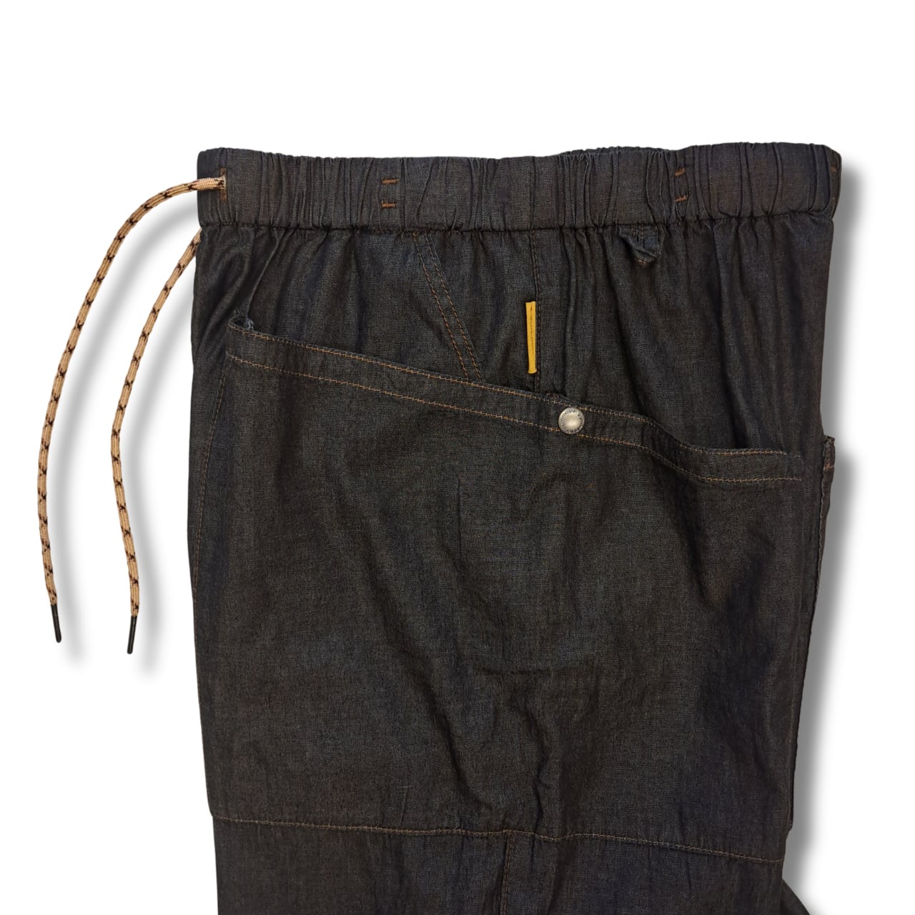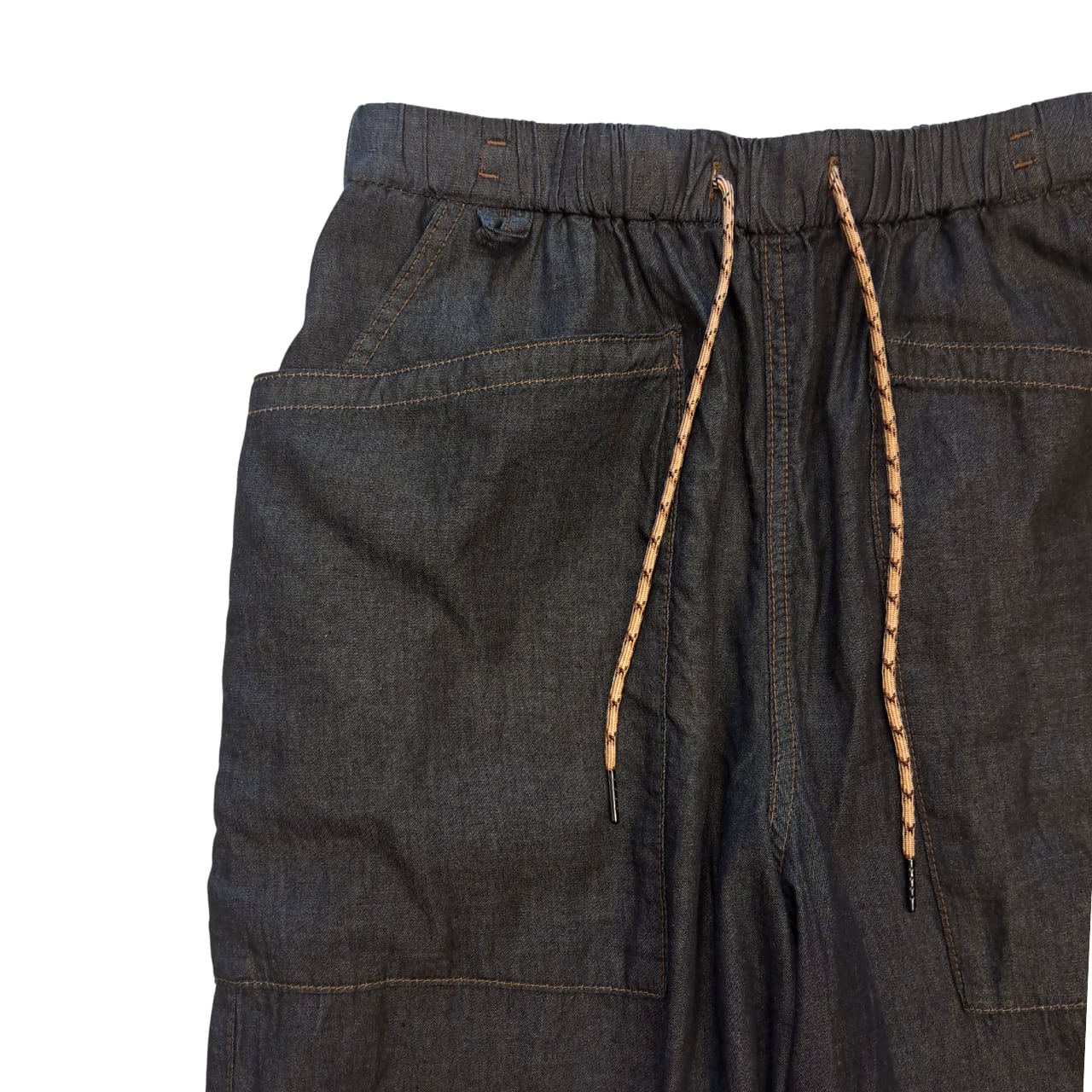 フロントとバックにキーループ、ウエストはゴム/紐のイージー仕様です。
