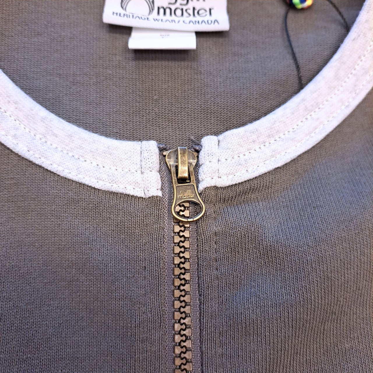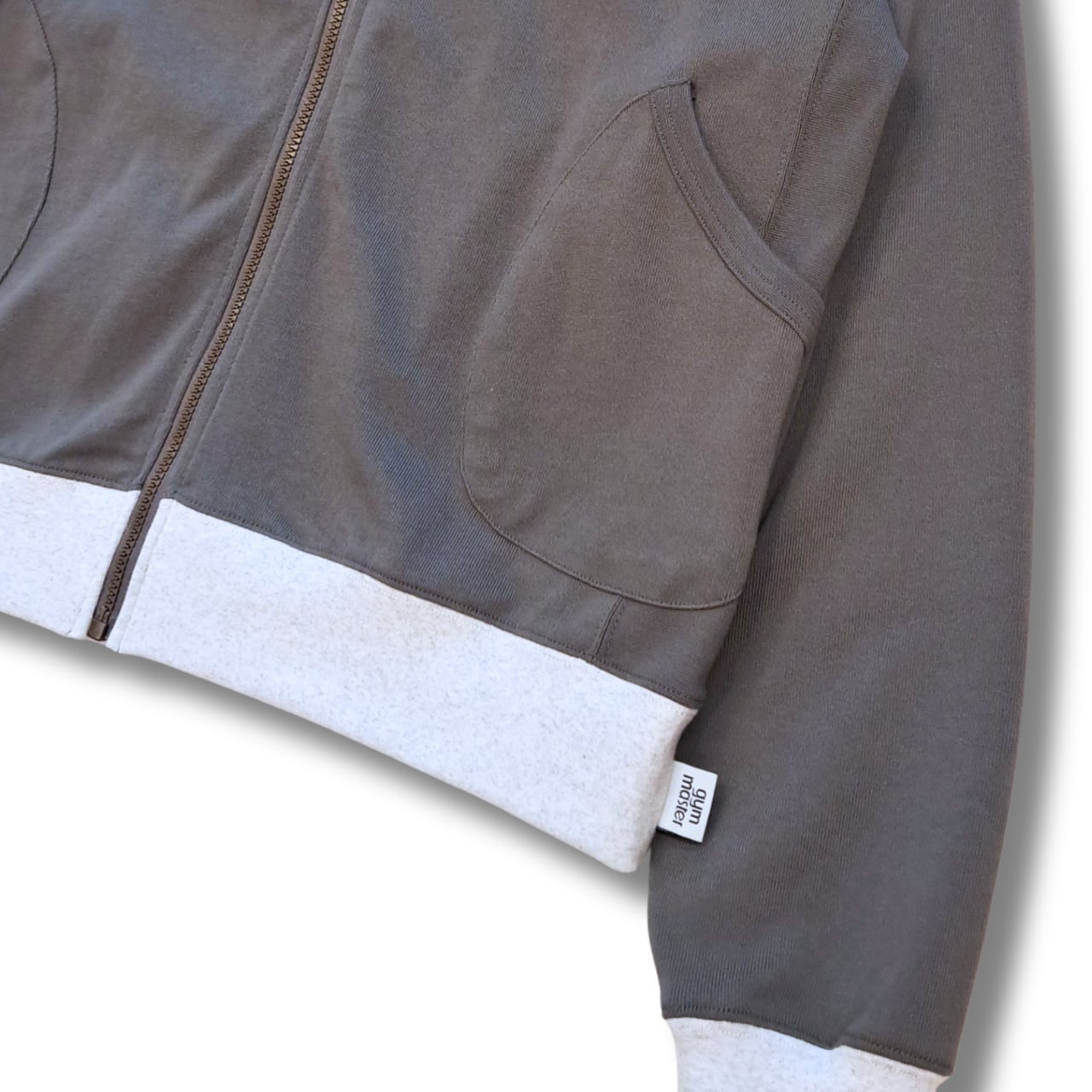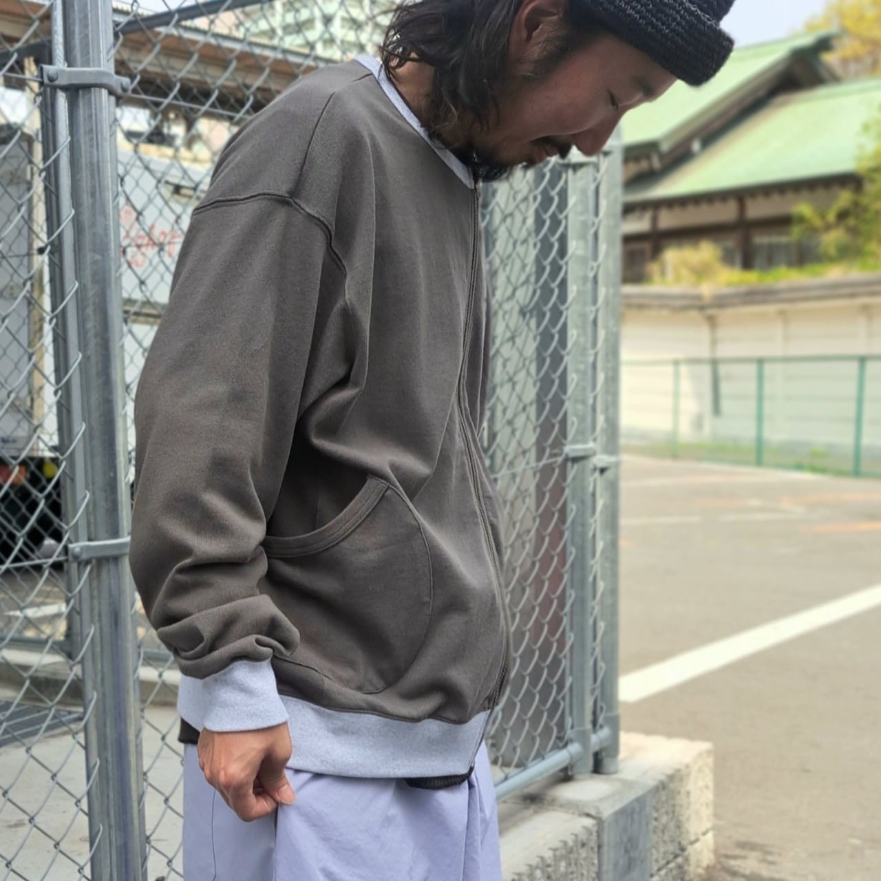 ディティールは古着でもおなじみ両サイドと裾はリブ使い、ラウンドのパッチポケット、センタージップにアンティークゴールドを使用。