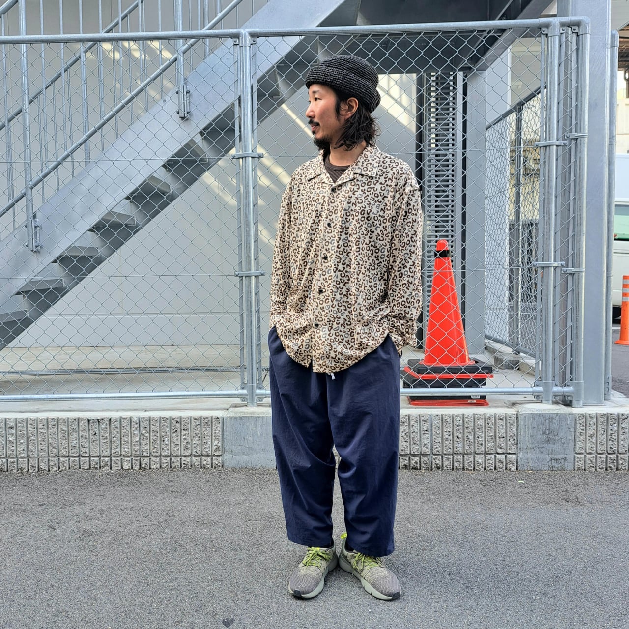 メッシュ仕様により通気性に優れたレオパード柄オープンカラーメッシュシャツ。