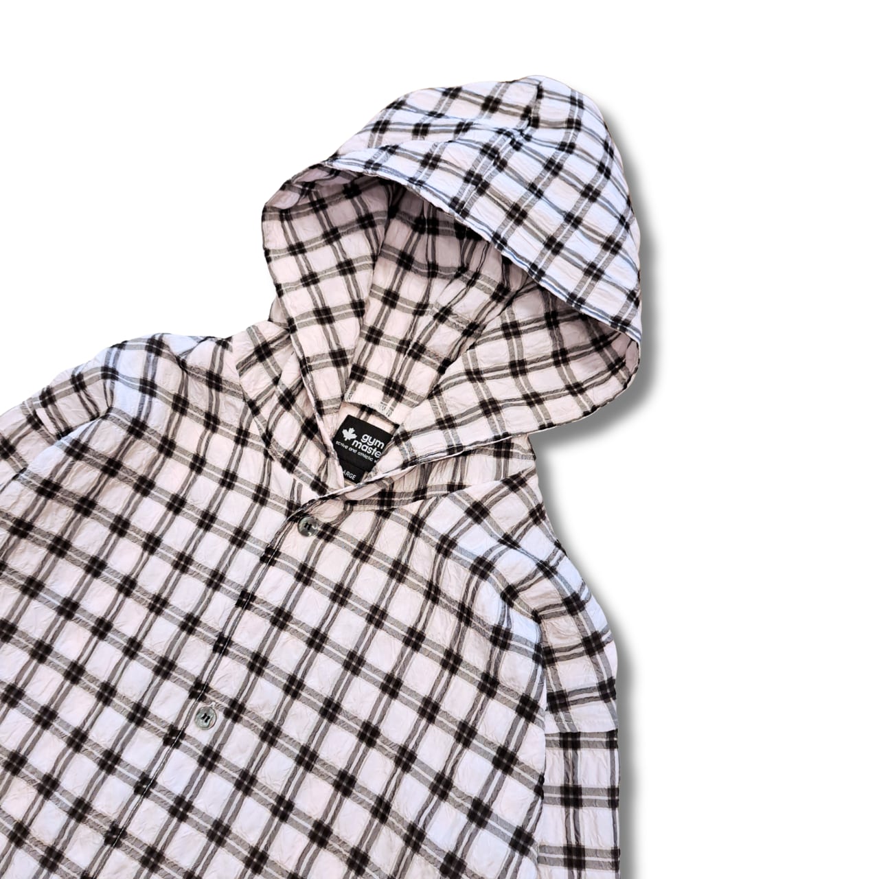 gym master - シアサッカーチェックフードシャツ (pink beige/black)
