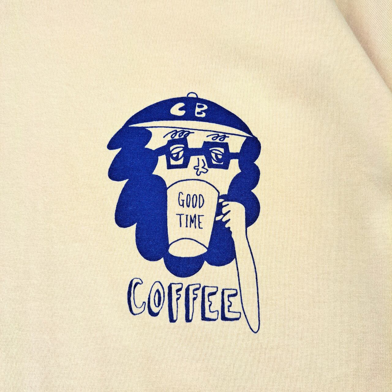 左胸にコーヒータイムのネルソン、袖には立体感のあるコーヒー豆がプリントされたワイドフィットロングスリーブTです。