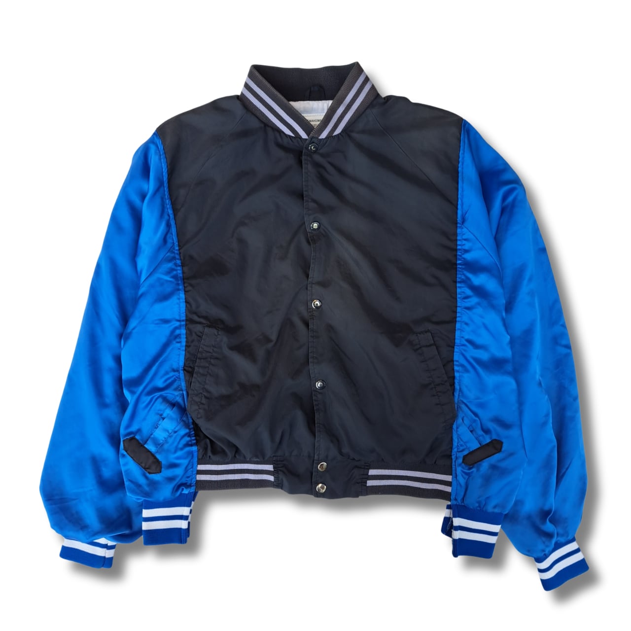 2枚のUSEDのナイロンスタジアムジャケットを解体後、1枚に再構築。