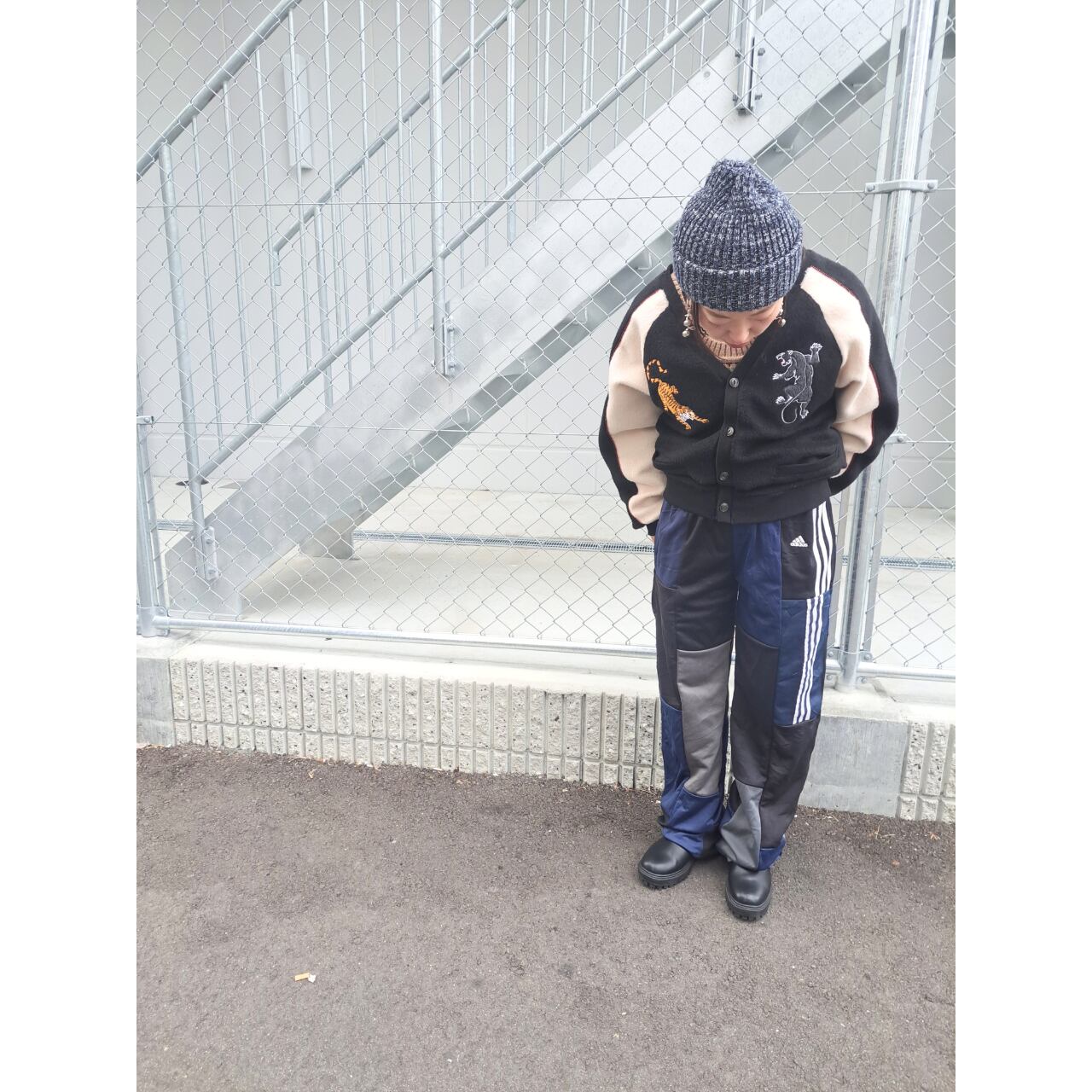 USEDジャージを解体し再構築した一点もののトラックパンツ。